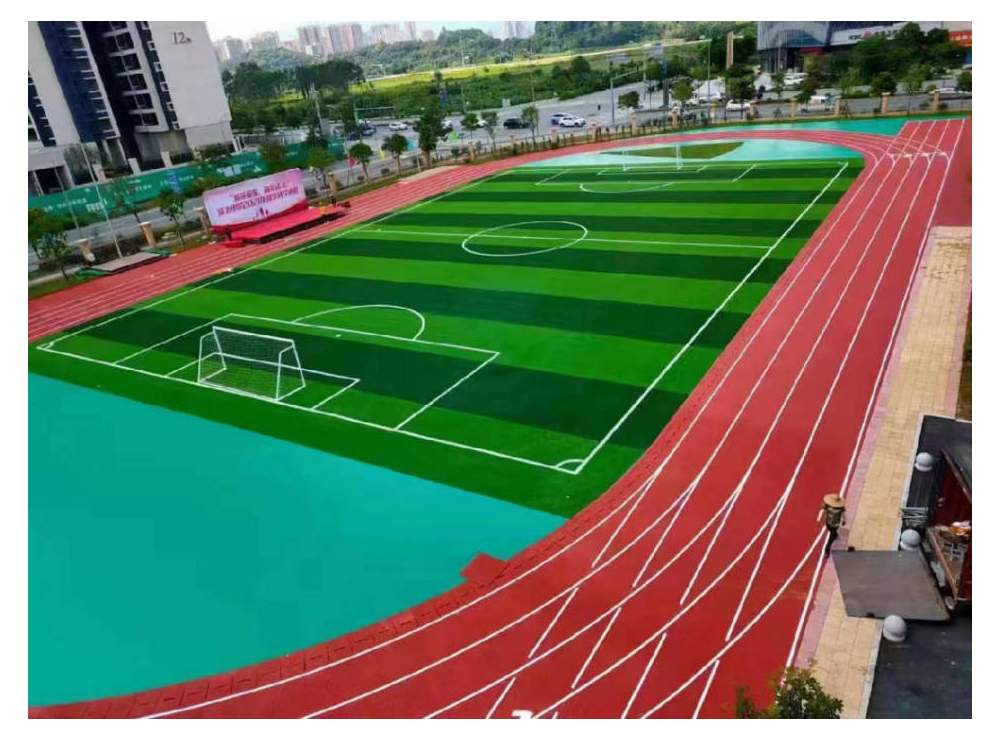 成功研發(fā)多層結(jié)構(gòu)的全塑型自結(jié)紋跑道,鋪裝了潼南中學(xué)運(yùn)動場, 場地品質(zhì)獲得多方贊美。
